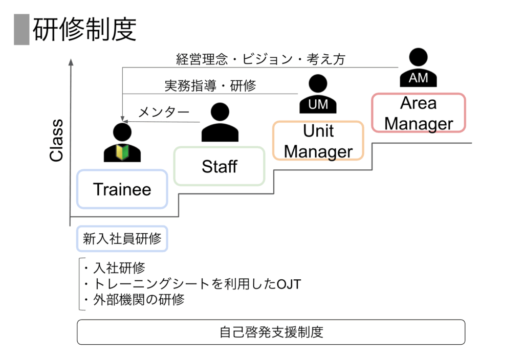 入社直後は不安や疑問が多いものですが、この教育制度では、それぞれの段階に合わせて適切なサポートを受けることができます。